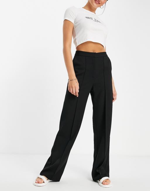Topshop Straight Pinseam Pants In Black Asos